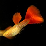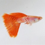 Гуппи (Poecilia reticulata var.) кобра красная альбино, самец,, размер 3,0-4,0 см